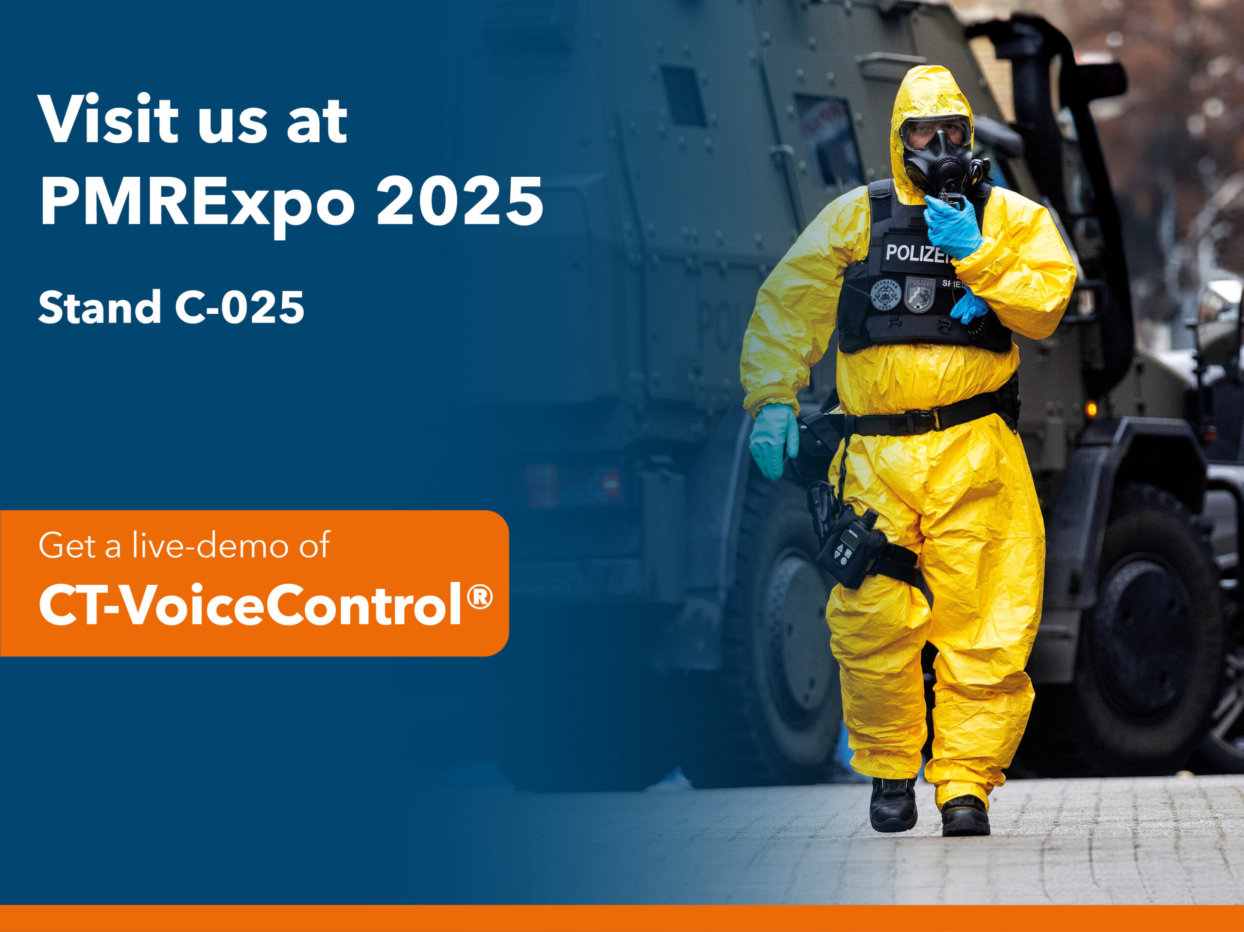 German premiere at PMRExpo: CEOTRONICS presents CT-VoiceControl® - the first voice control system for mission-critical communication. Visit us at stand C-025 in hall 7.1.