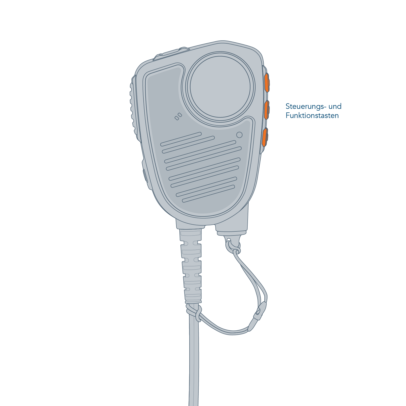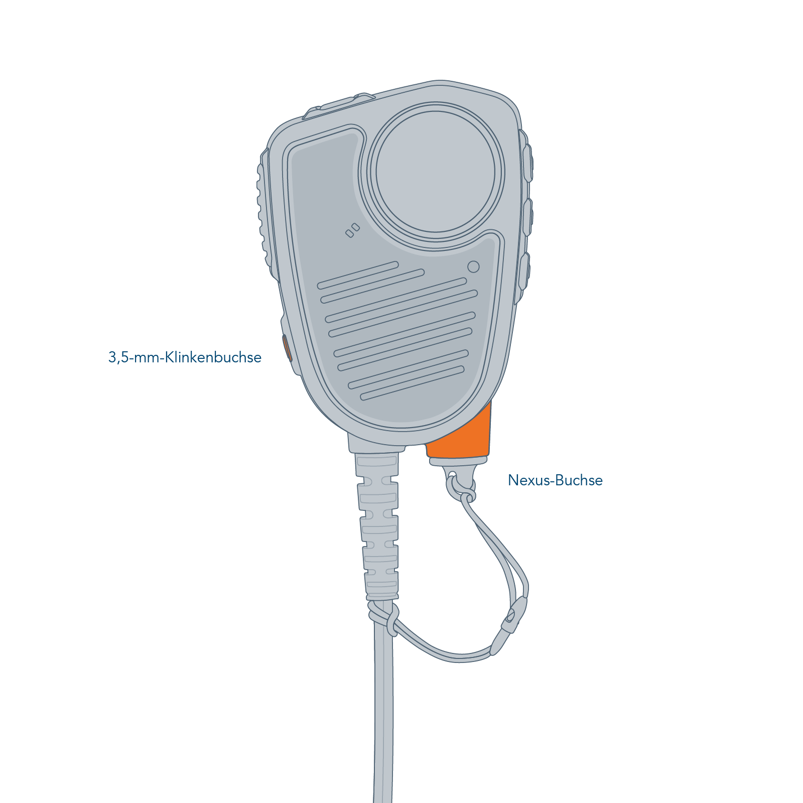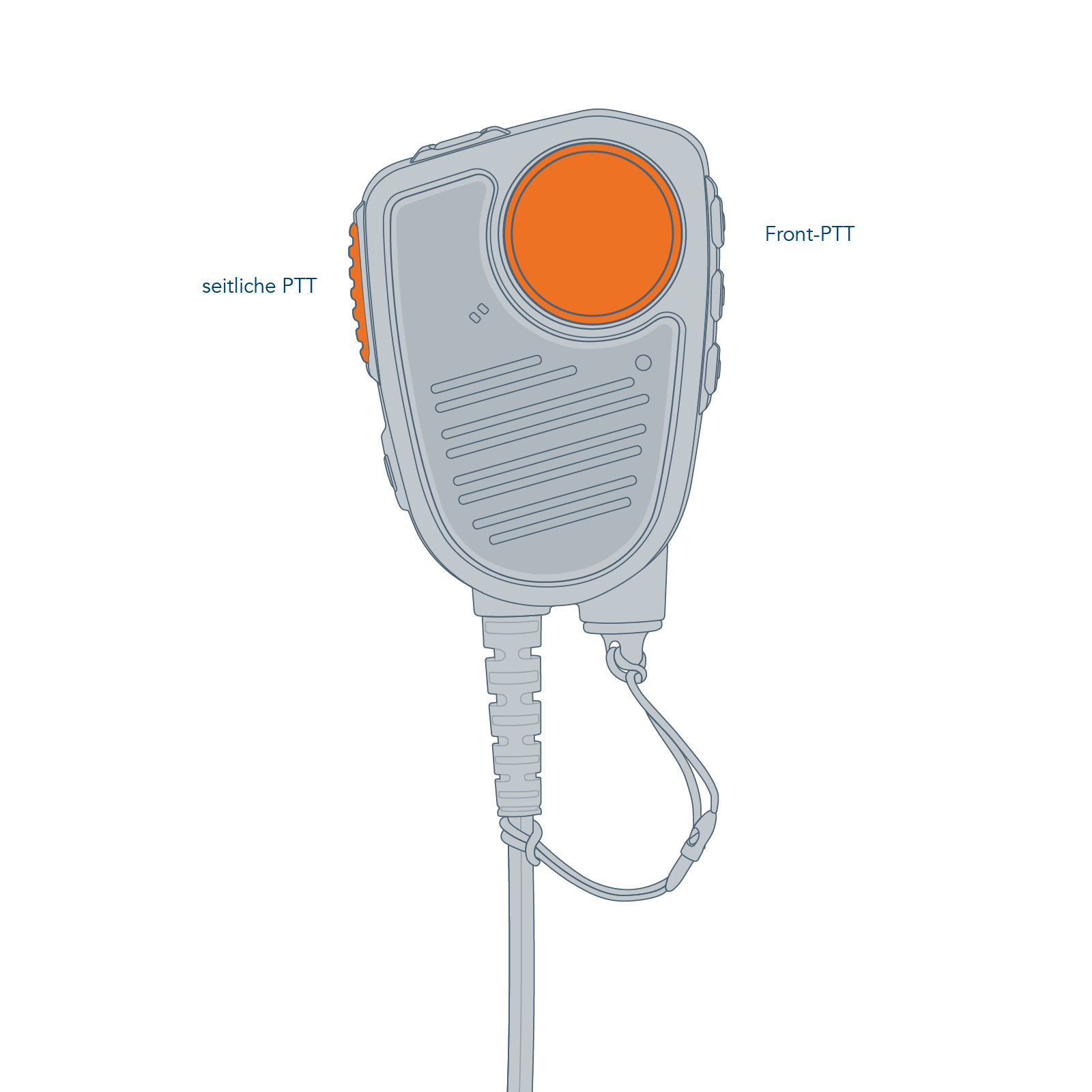 The CT-MultiCom is the reliable all-rounder for these situations. The hand-held microphone is particularly robust and user-friendly. It has two push-to-talk buttons that can be operated safely even when wearing gloves. The easy-to-grip function buttons on the side control the activation of the loudspeaker and the volume control. The color-coded emergency call button at the top can be quickly activated with the thumb.