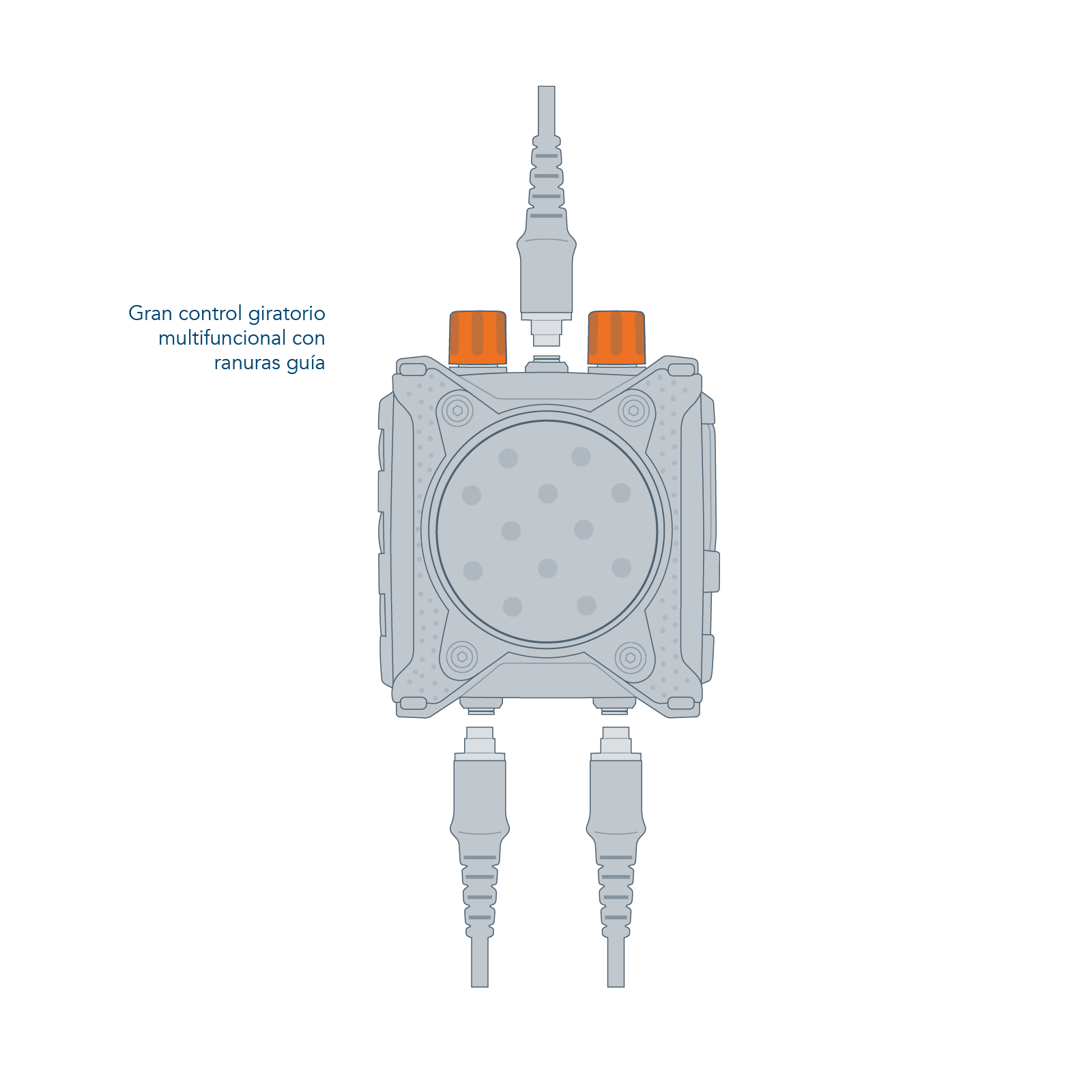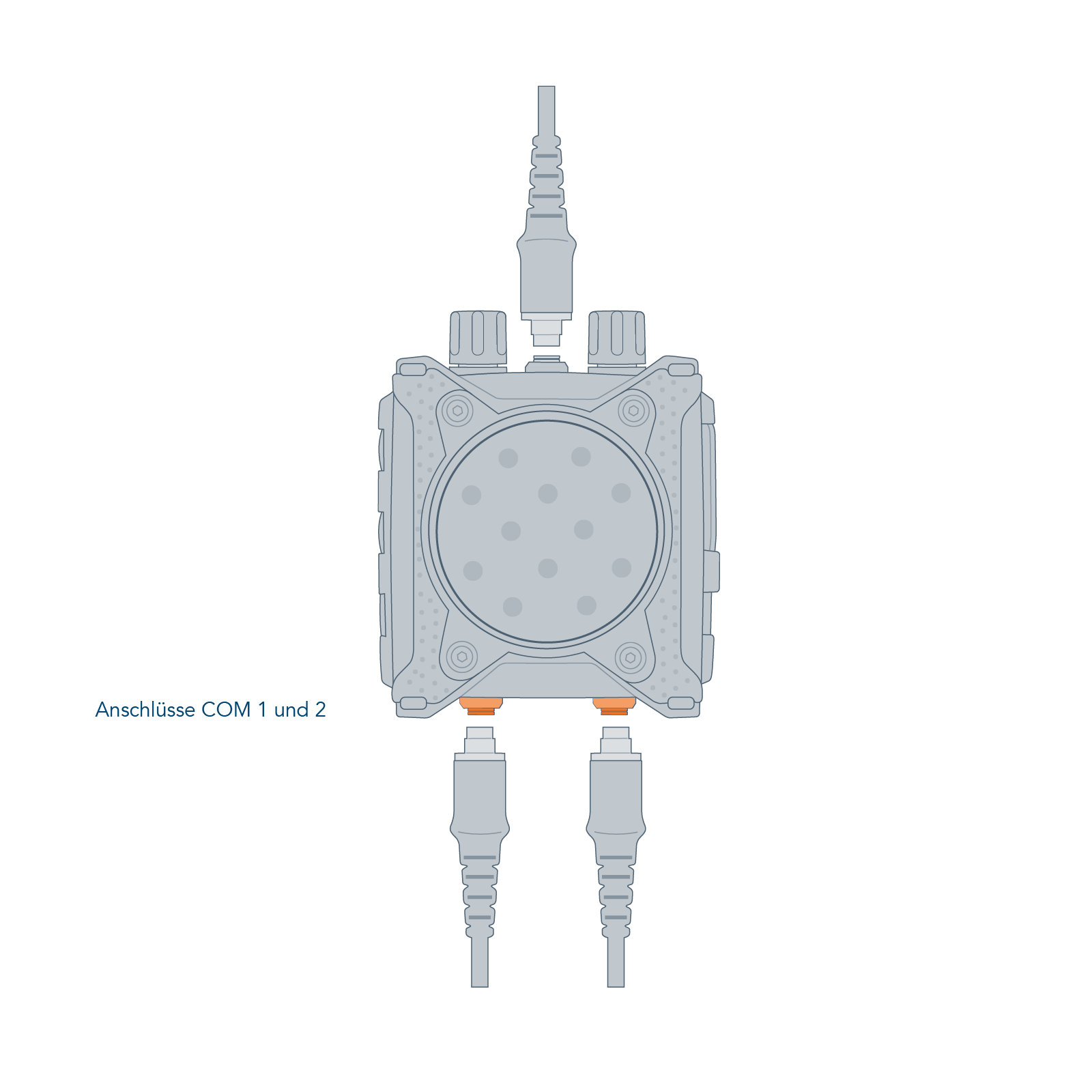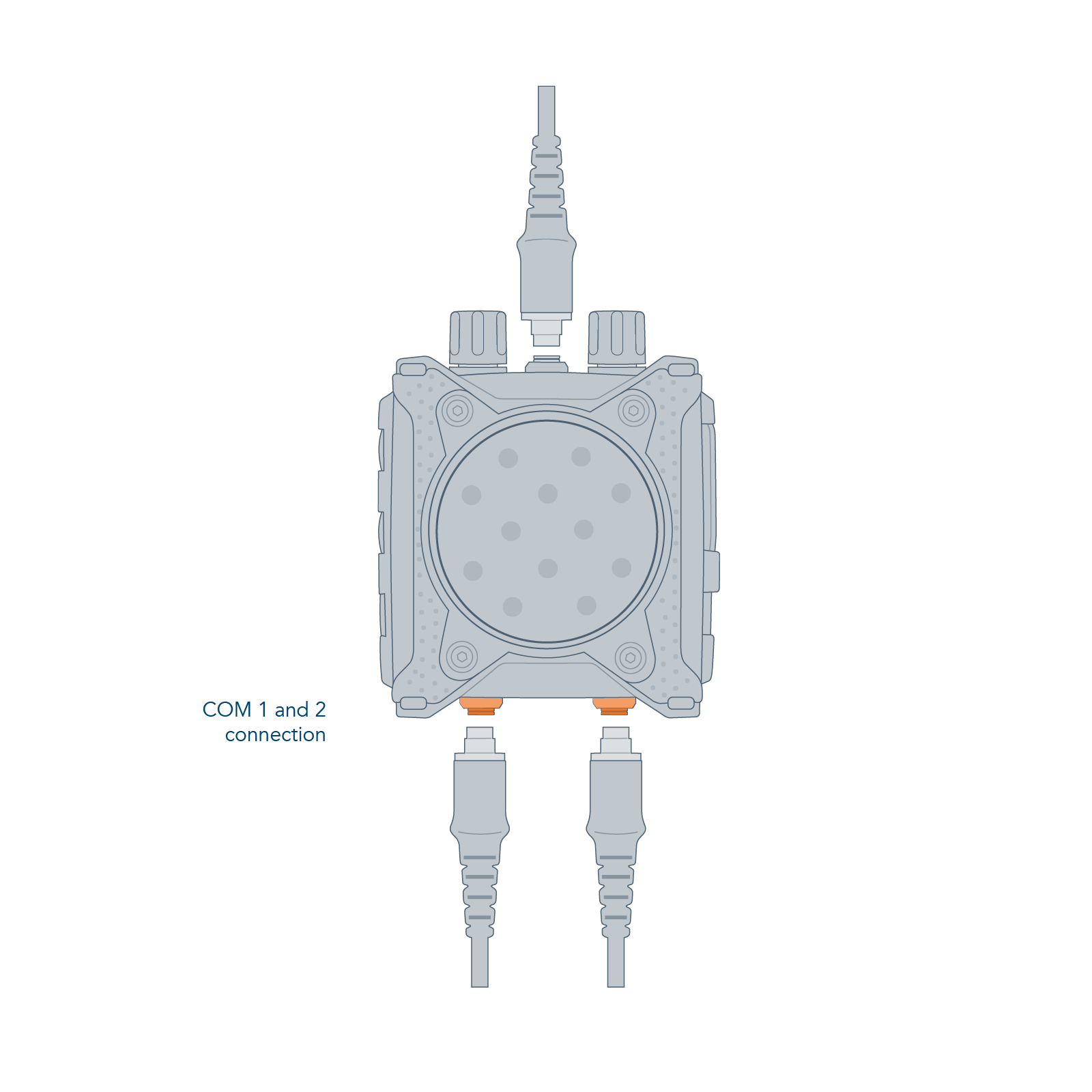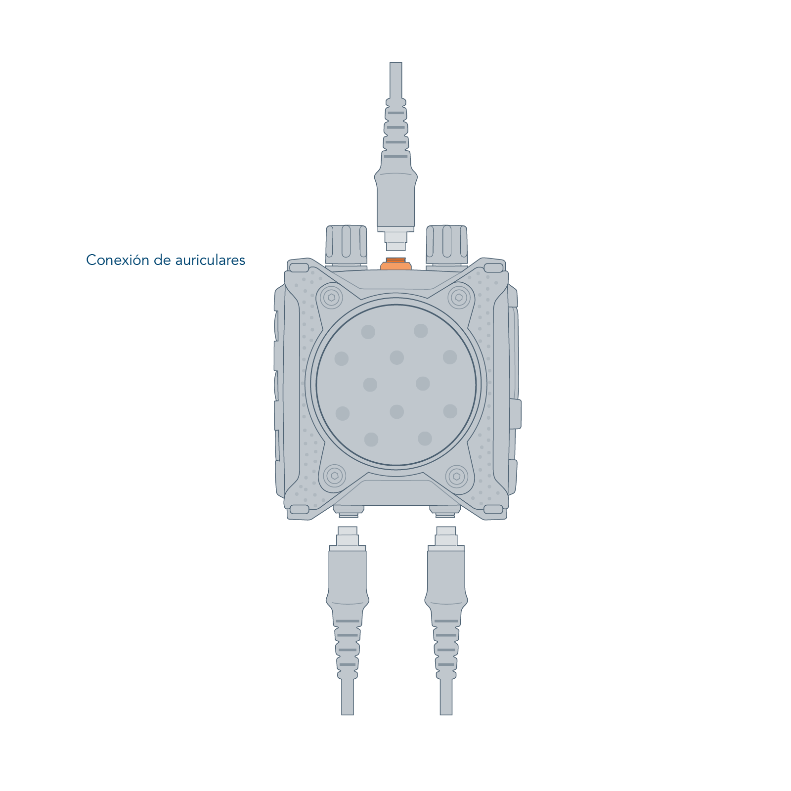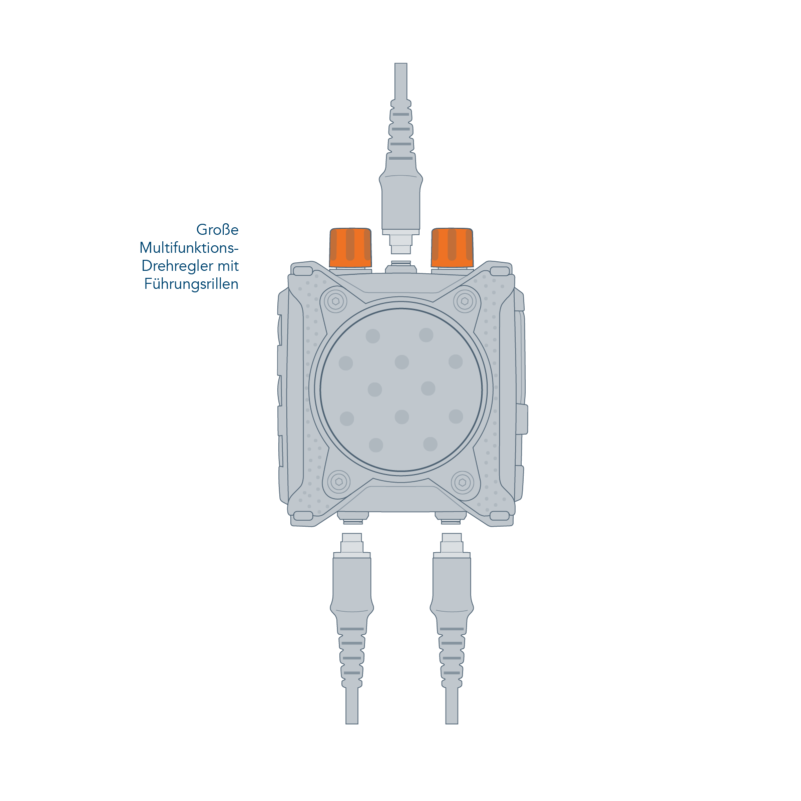 The CT-MultiPTT 2C has a large, clearly tactile front PTT. This makes it easy to operate even when wearing gloves. This ensures a high level of communication reliability, even in critical situations. The large multifunctional rotary controls can be gripped securely thanks to the guide grooves. Additional function buttons allow direct access to programmed additional functions of the connected radio devices. The CEOTRONICS voice menu with auditory feedback allows all basic settings or configuration changes to be made quickly, easily and intuitively: when navigating through the operating menu, the user of the CT-MultiPTT 2C receives feedback on the current setting as voice output. The extremely robust plug connections of this control unit are designed with break-away technology and automatically release for emergency unlocking from a defined tensile force. The CT-MultiPTT 2C can also be controlled remotely with the small, lightweight CT-WirelessPTT MIL.