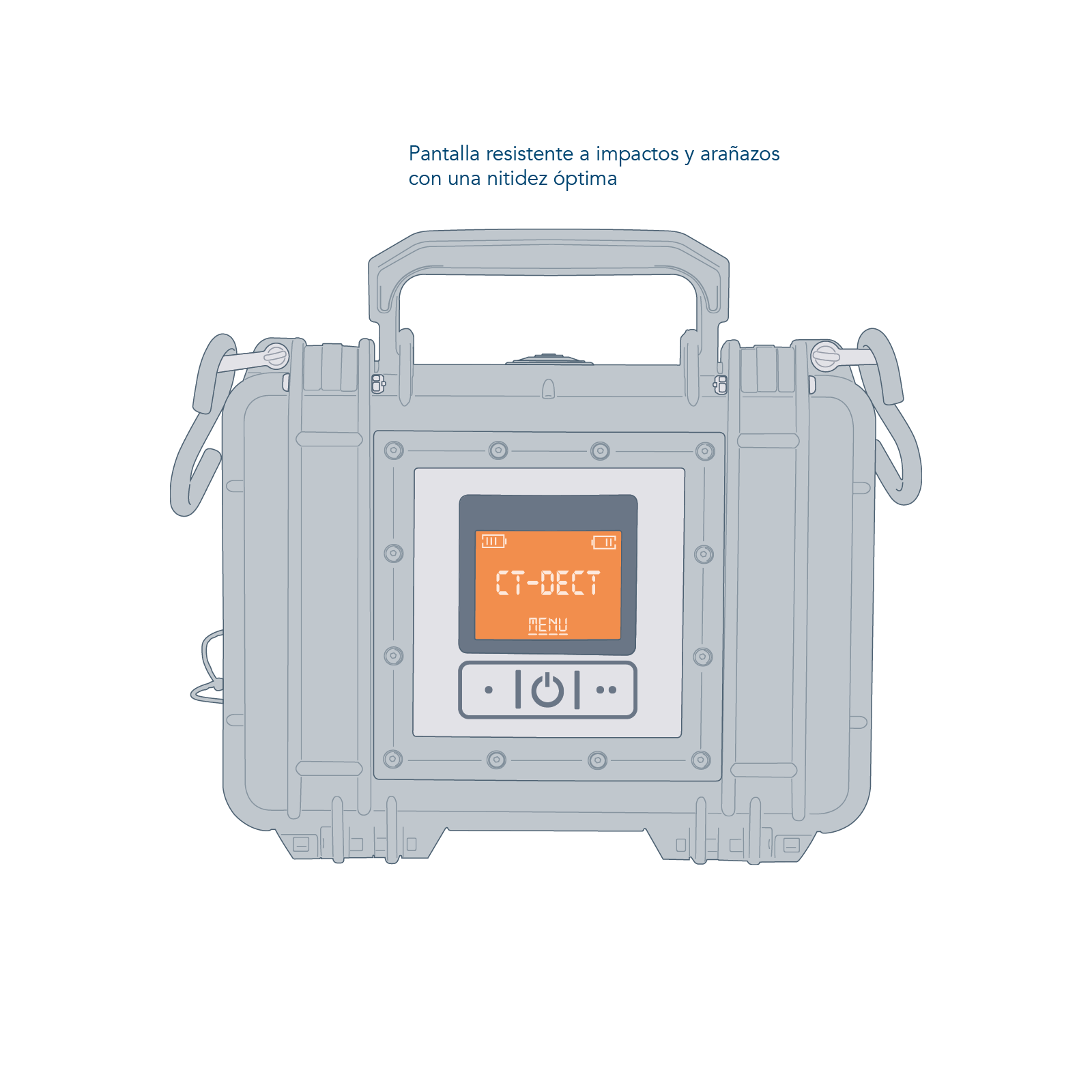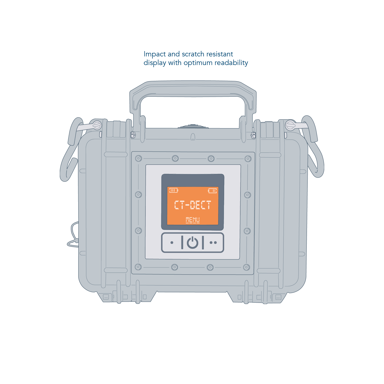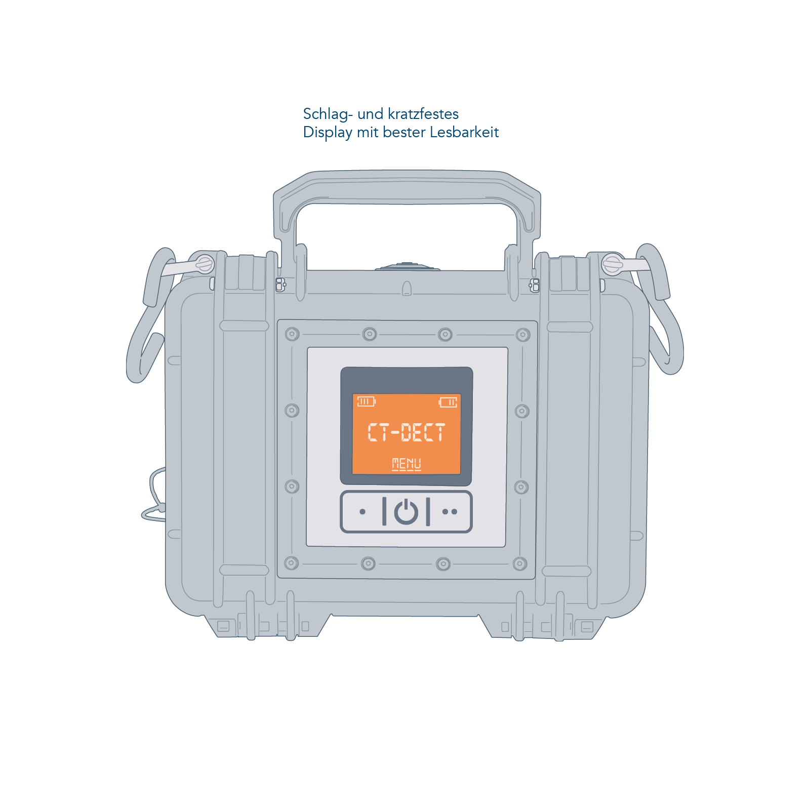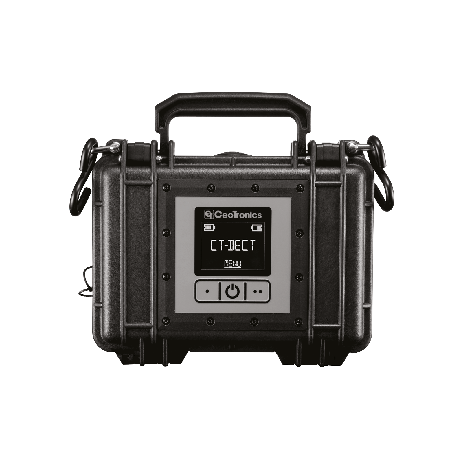 Das CT-DECT Case ist als kompakter Koffer besonders robust – und hält auch schlechtesten Umgebungsbedingungen stand. Das schlag- und kratzfeste Display in dem aus schlagfestem Polymer gefertigten Gehäuse wurde nach MIL-STD-810G in Bezug auf Klima, Schock, Vibration und Sturz getestet.